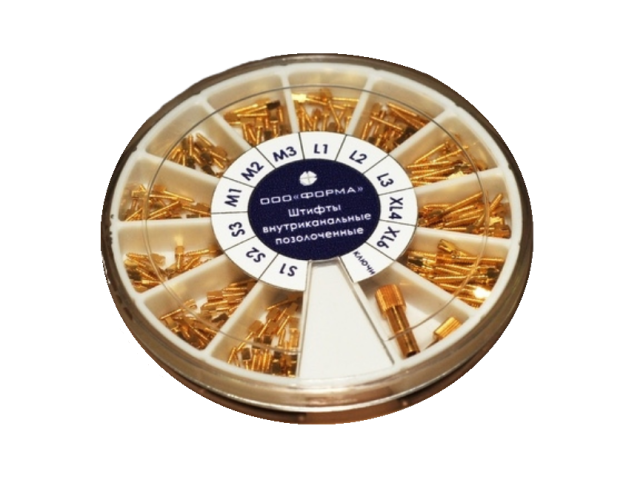 Сплав анкерных штифтов Форма не содержит вредных веществ, отличается прочностью и износостойкостью. Для повышения коррозионной устойчивости они покрываются золотым напылением, коническая форма и специальный хвостовик облегчают их установку.