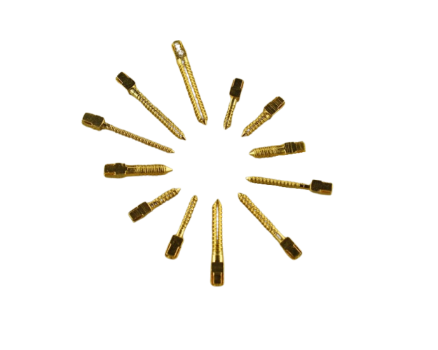 Анкерный штифт S1 – армировочный материал, применяемый при реставрациях зубов, у которых полностью разрушена коронковая часть. Они изготовлены из прочного сплава, который не содержит свинца, а для повышения коррозионной устойчивости покрывается слоем золота 3 мкм.